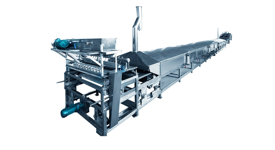 通過攤漿輥將漿液分攤到蒸粉網(wǎng)帶上,攤漿均勻,無薄厚不均現(xiàn)象,攤漿厚度可調(diào);